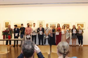 Der Zeugnisreigen fand Klasse für Klasse im ehrwürdigen Ambiente des Römersaals statt. Viele der Absolventen wurden dabei von Eltern, Großeltern und Partnern begleitet. Der Fachbereich Gestaltung hatte den Raum extra für den feierlichen Anlass mit dreidimensionalen Impressionen von Hildesheimer Architektur, die im Fach „Plastisches Gestalten“ von den Schüler*innen erstellt worden waren, dekoriert.
