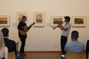 Der musikalische Rahmen kam vom Duo „Kartoffelstampfer“ – eine großartige Last-Minute-Entdeckung der Klasse 12G. Mit Gitarre und Klarinette gelang es den beiden Künstlern, die Gäste immer aufs Neue mit ihrem eingängigen Repertoire an Melodien und Klängen zu verzaubern.
